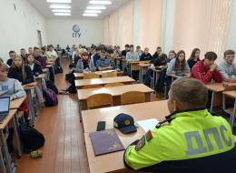 25.09.2025 в рамках Единого дня безопасности на факультете физической культуры состоялась встреча с заместителем начальника межрайоного отдела ГАИ УВД Медведевым Е.О. На встрече были разъяснены вопросы о внесении изменений в Правила дорожного движения, а также приведена статистика о нарушениях ПДД на дорогах Гомельской области.