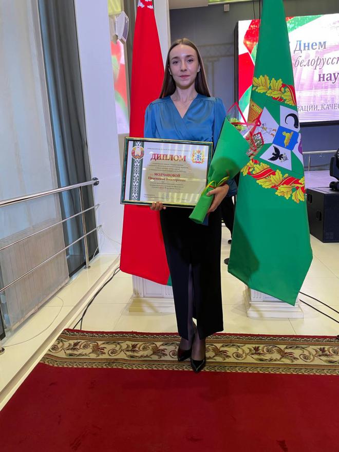 Среди награжденных – молодые ученые Гомельского государственного университета имени Ф. Скорины, обладатели ежегодной премии Гомельского областного исполнительного комитета за 2025 год, в том числе высокой награды была удостоена аспирант кафедры теории и методики физической культуры ГГУ имени Ф. Скорины Прасковья Молчанова;