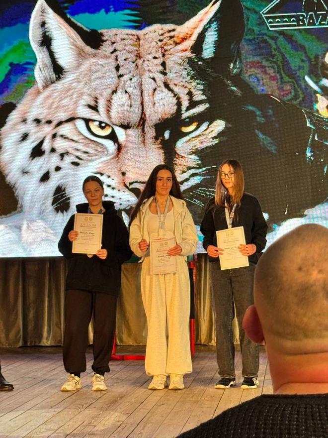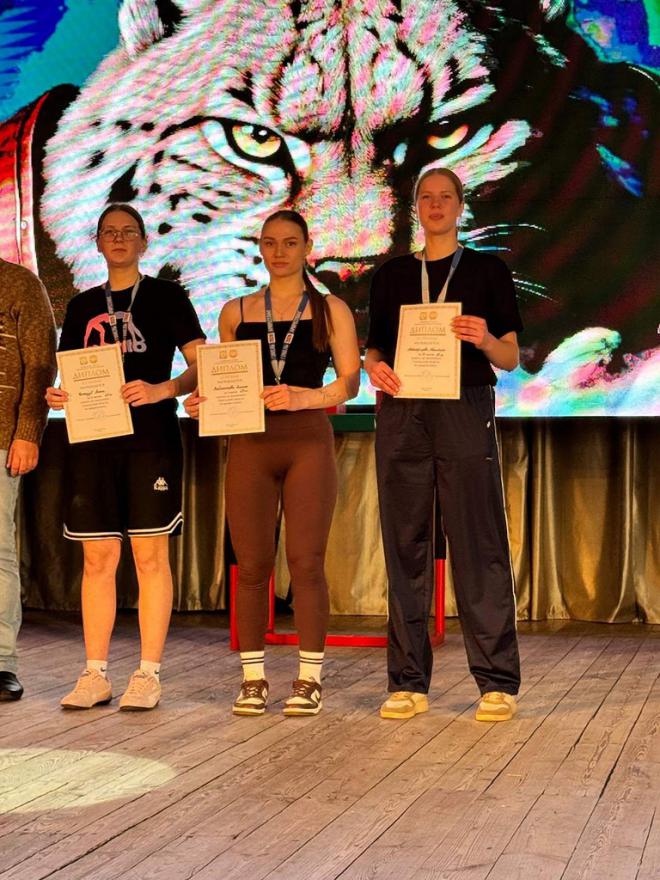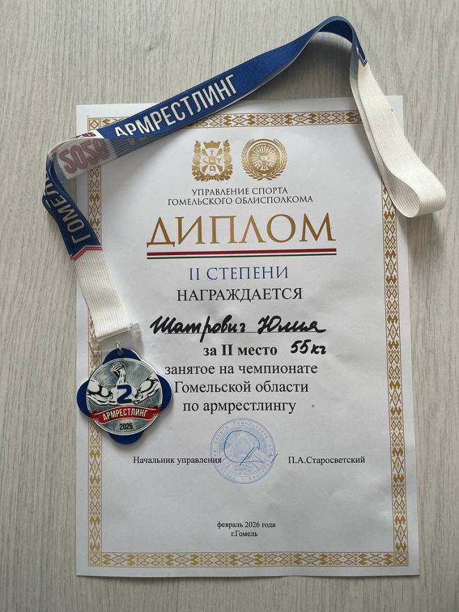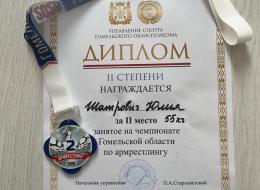 Шатрович Юлия (ФК-12) заняла 2 место в борьбе на левую руку и 3 место в борьбе на правую, заняв итоговое 2 место по сумме двух рук среди женщин (весовая категория 55 кг).